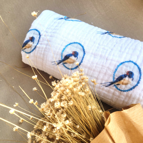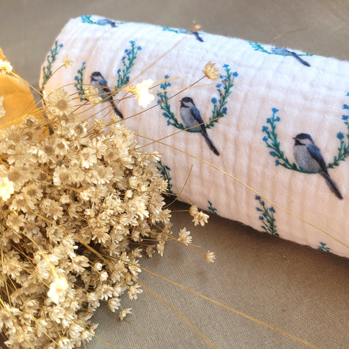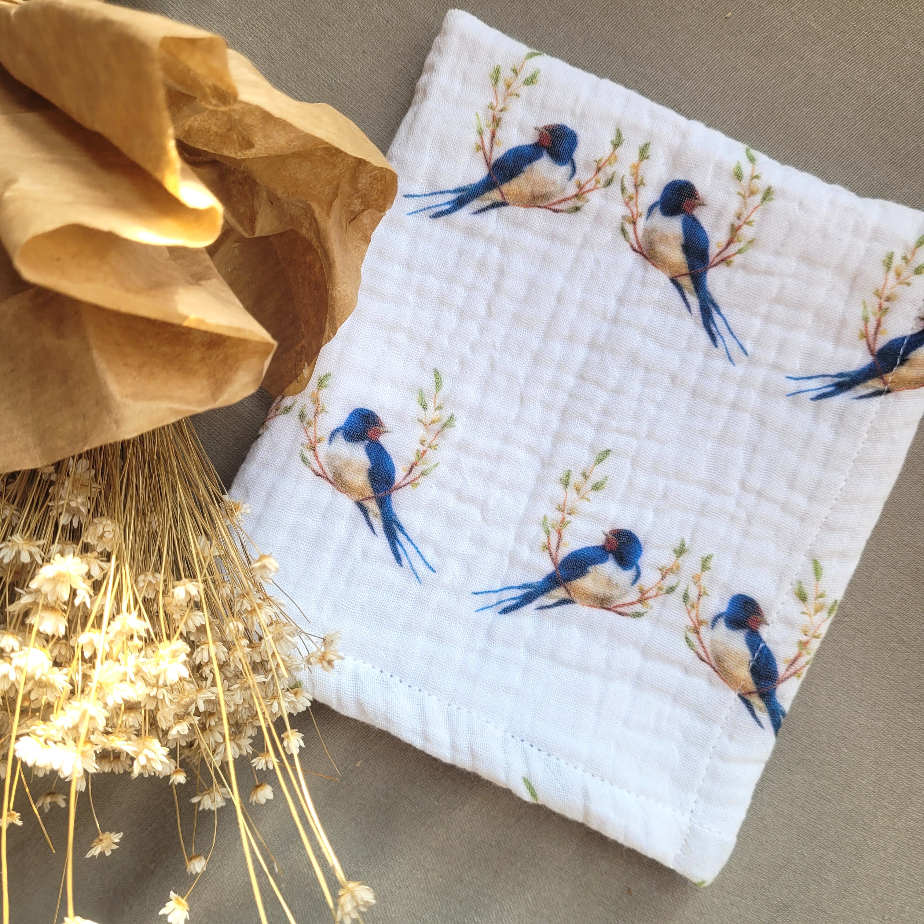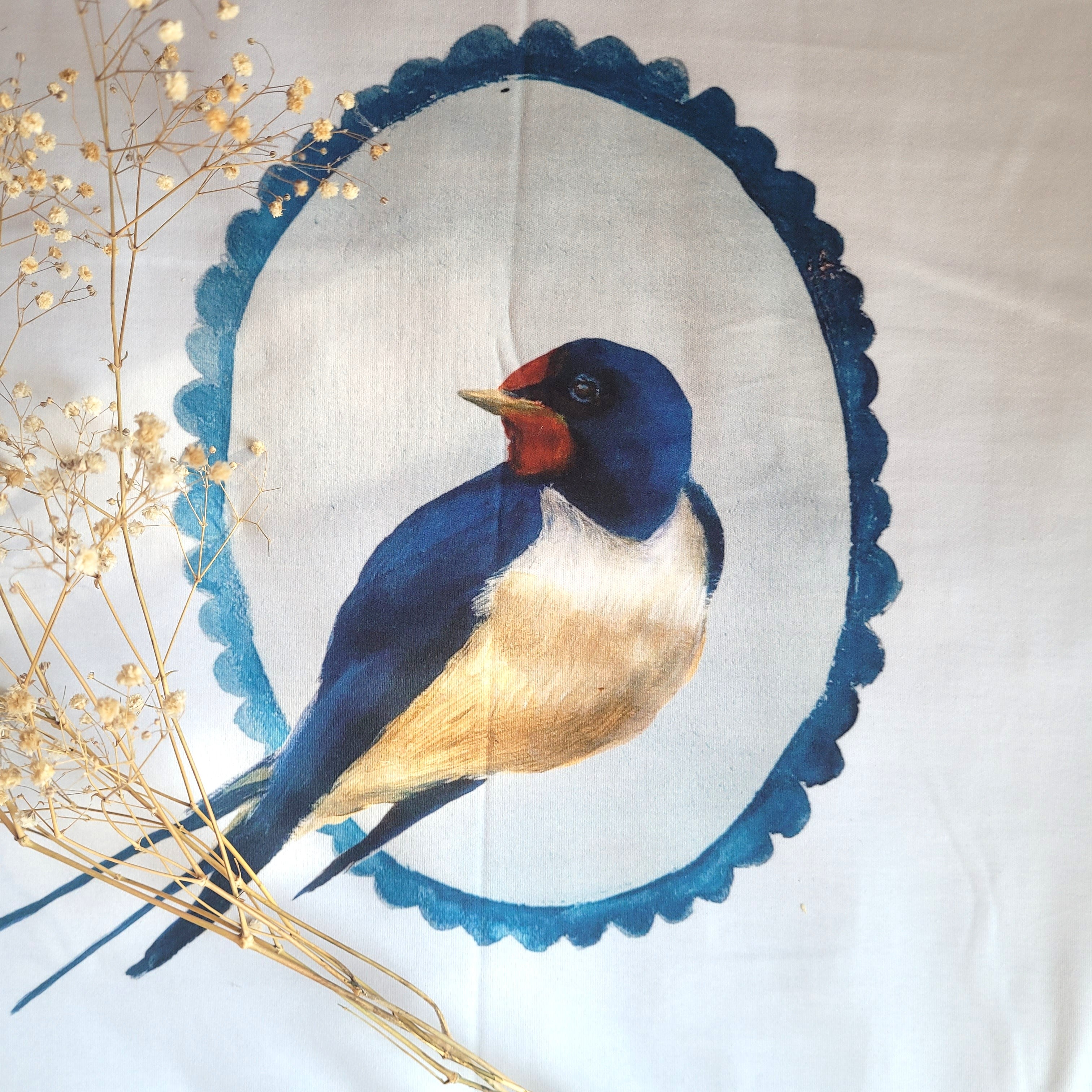 Kézzel illusztrált termékek: a saját festményeimből tervezem az egyedi madaras mintákat. Láthatod az ecsetvonásaimat is az anyagokon.